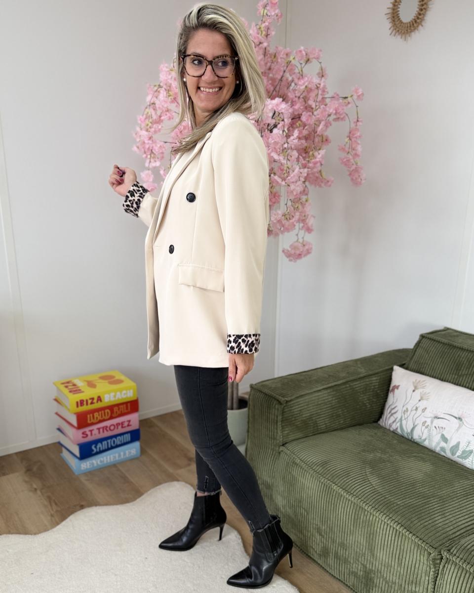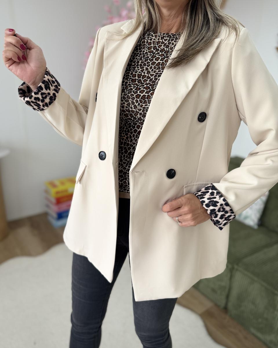 blazer mi long à epaulettes, revers des manches leopard, avec double boutonnages