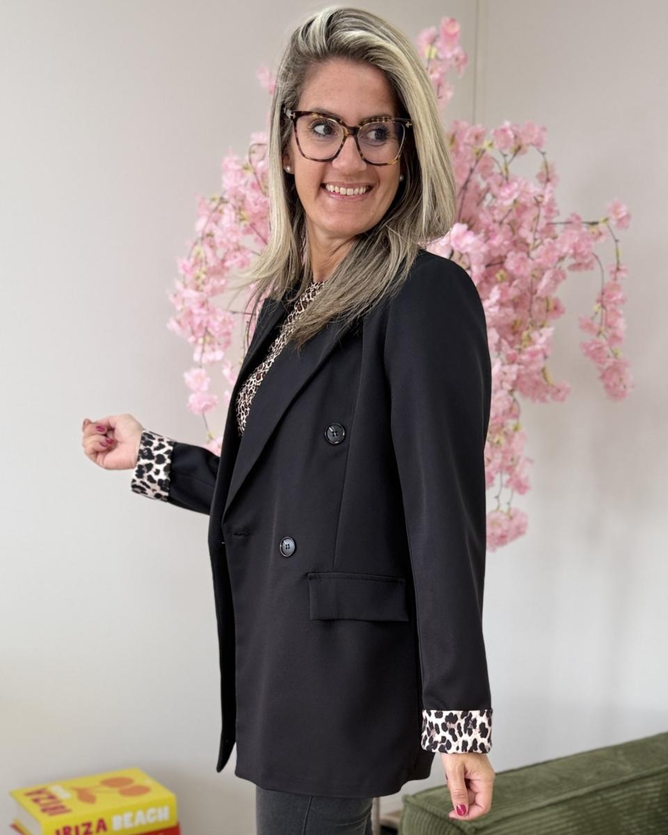 blazer mi long à epaulettes, revers des manches leopard, avec double boutonnages