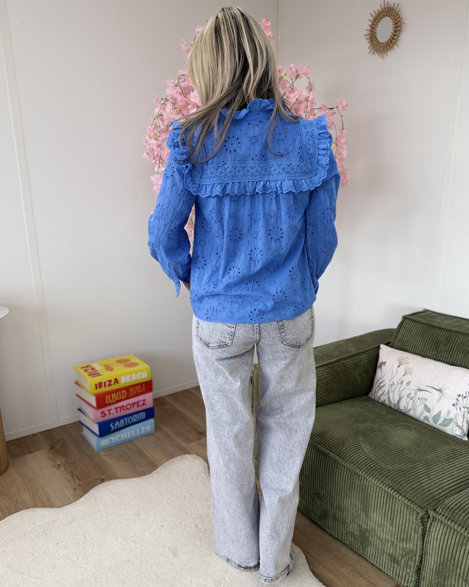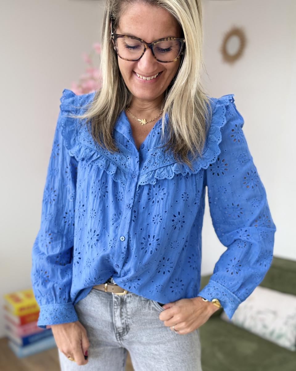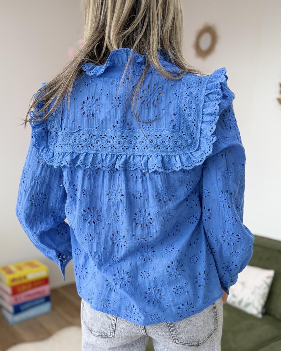 Chemise broderie anglaise bleue