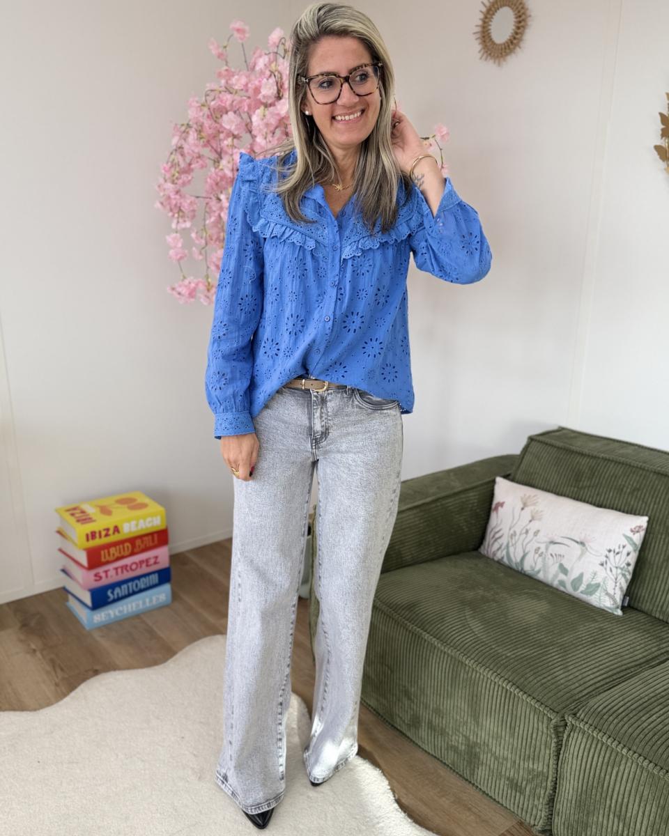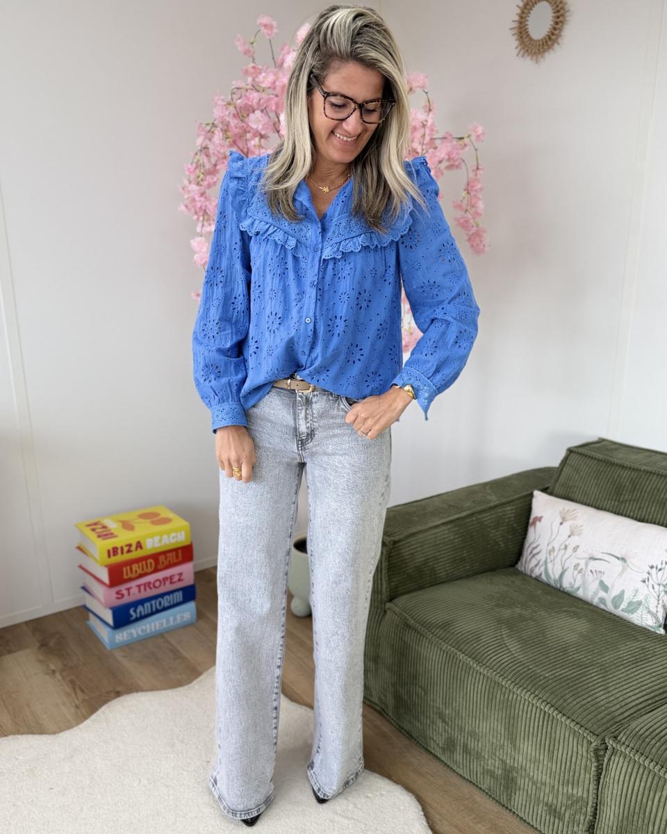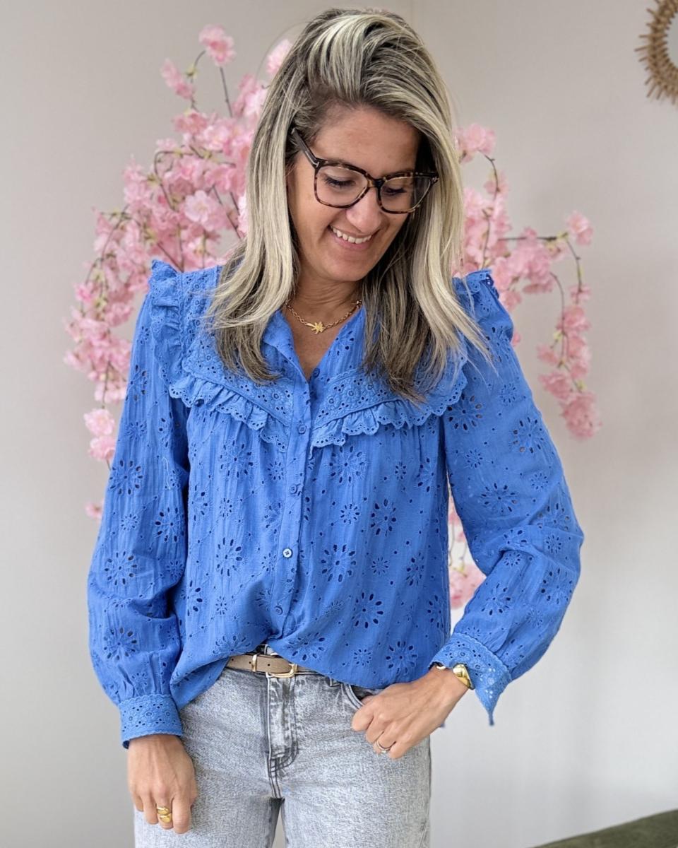 Chemise broderie anglaise bleue