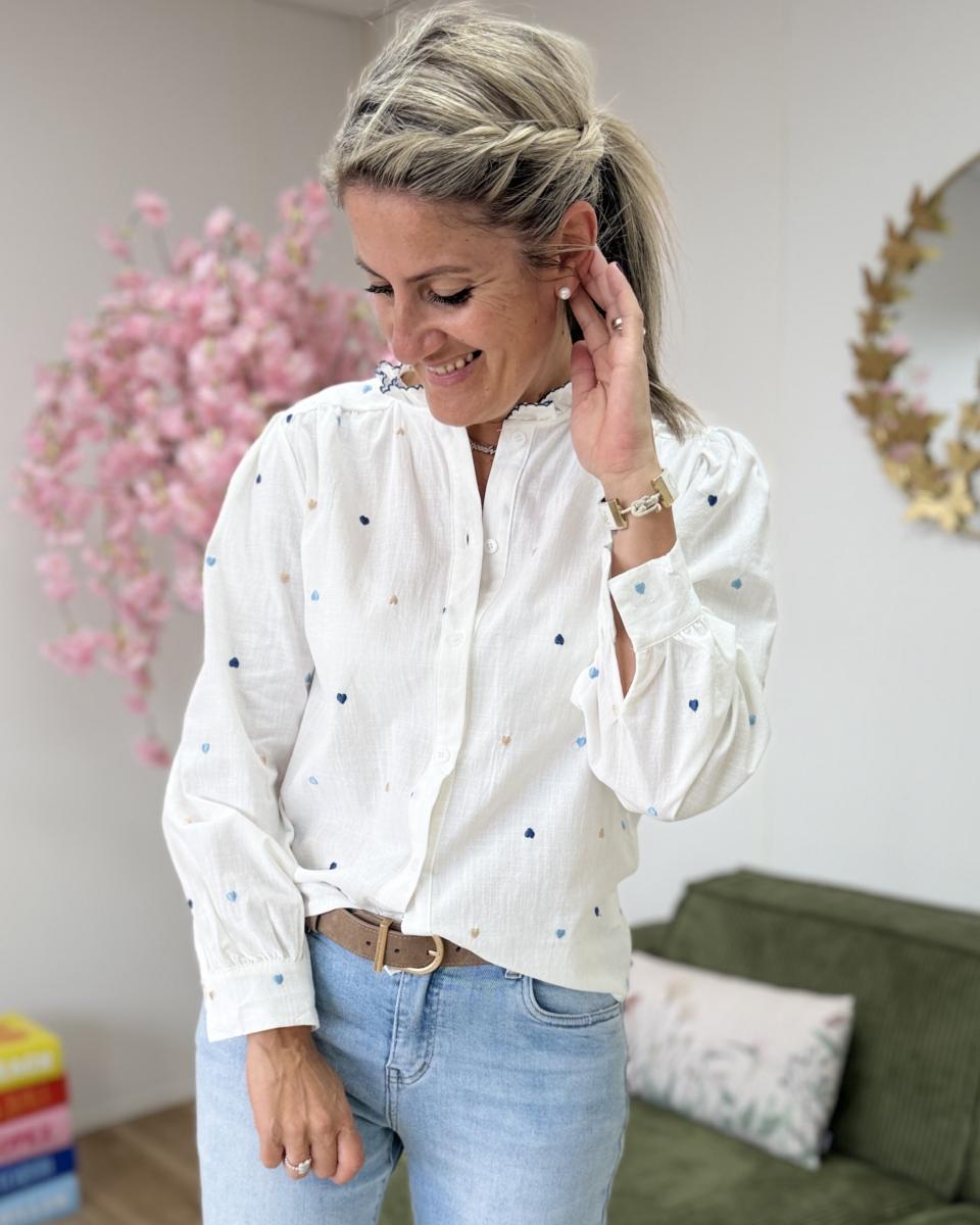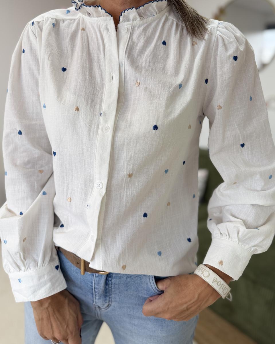 chemise brodée de coeurs, col volant