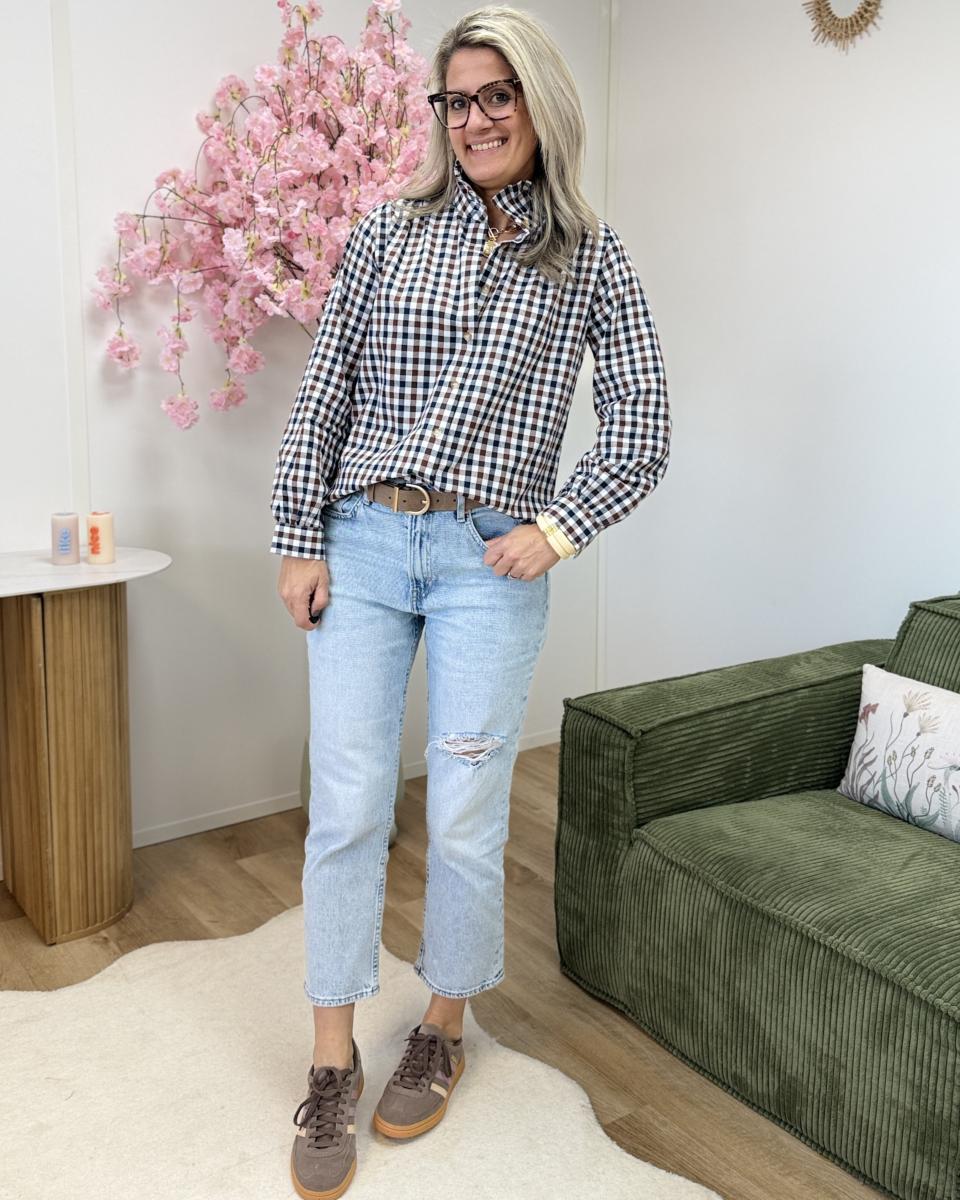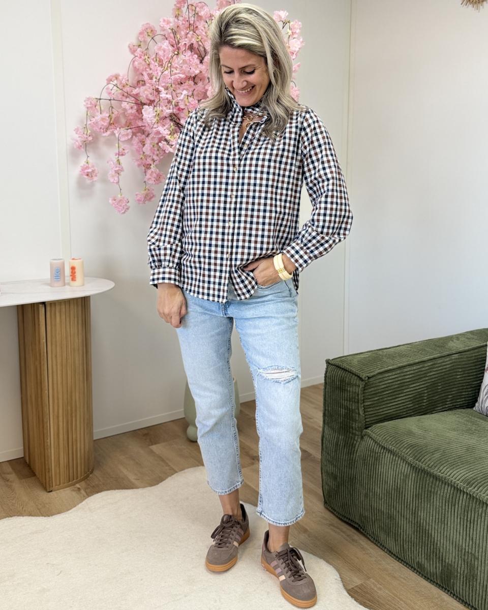 chemise à carreaux avec col volant