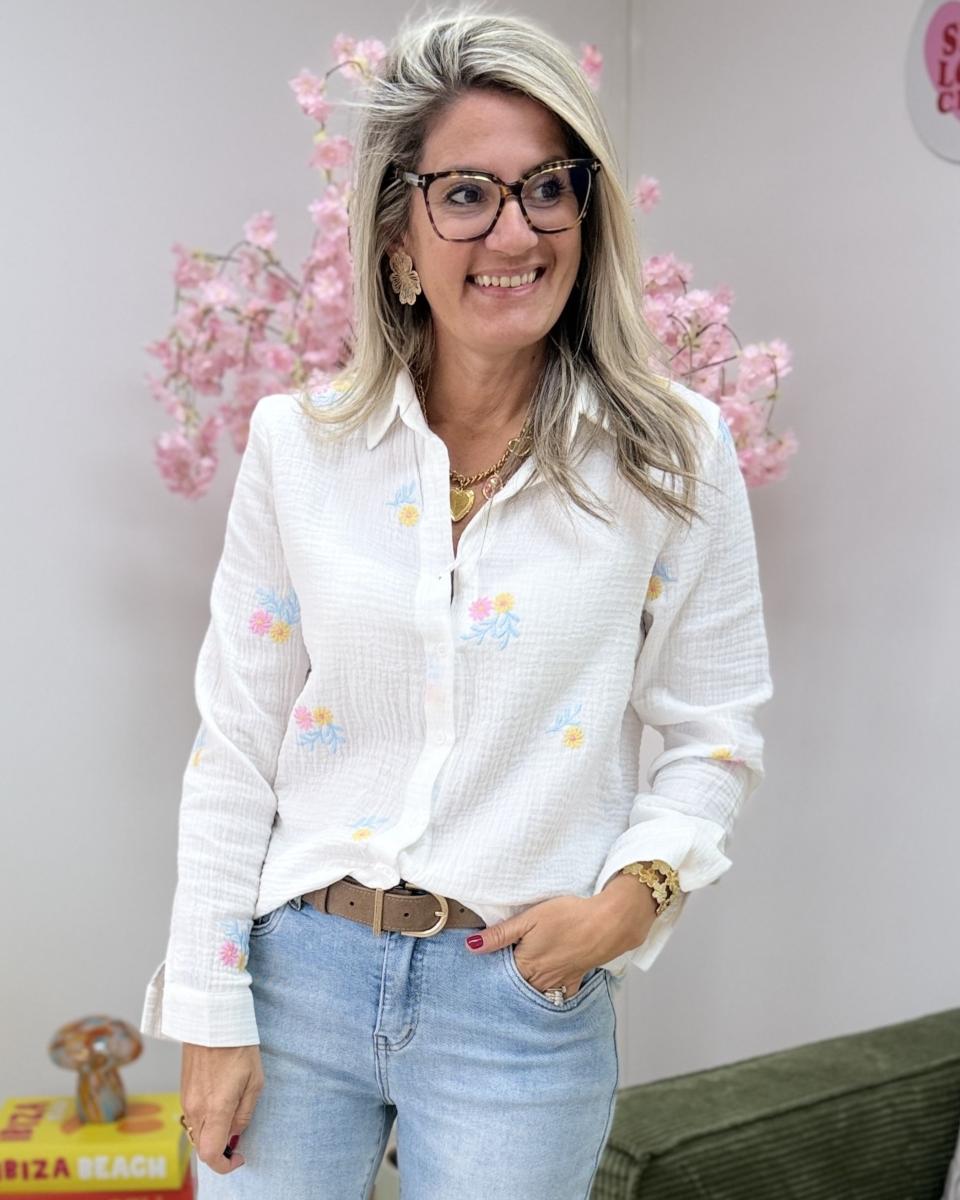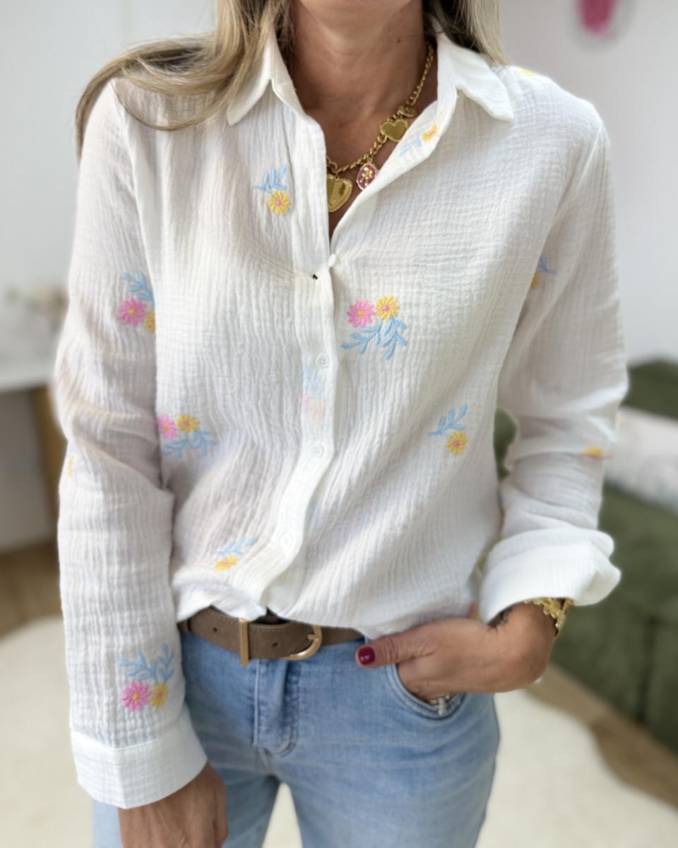 magnifique chemise brodé en gaze de coton