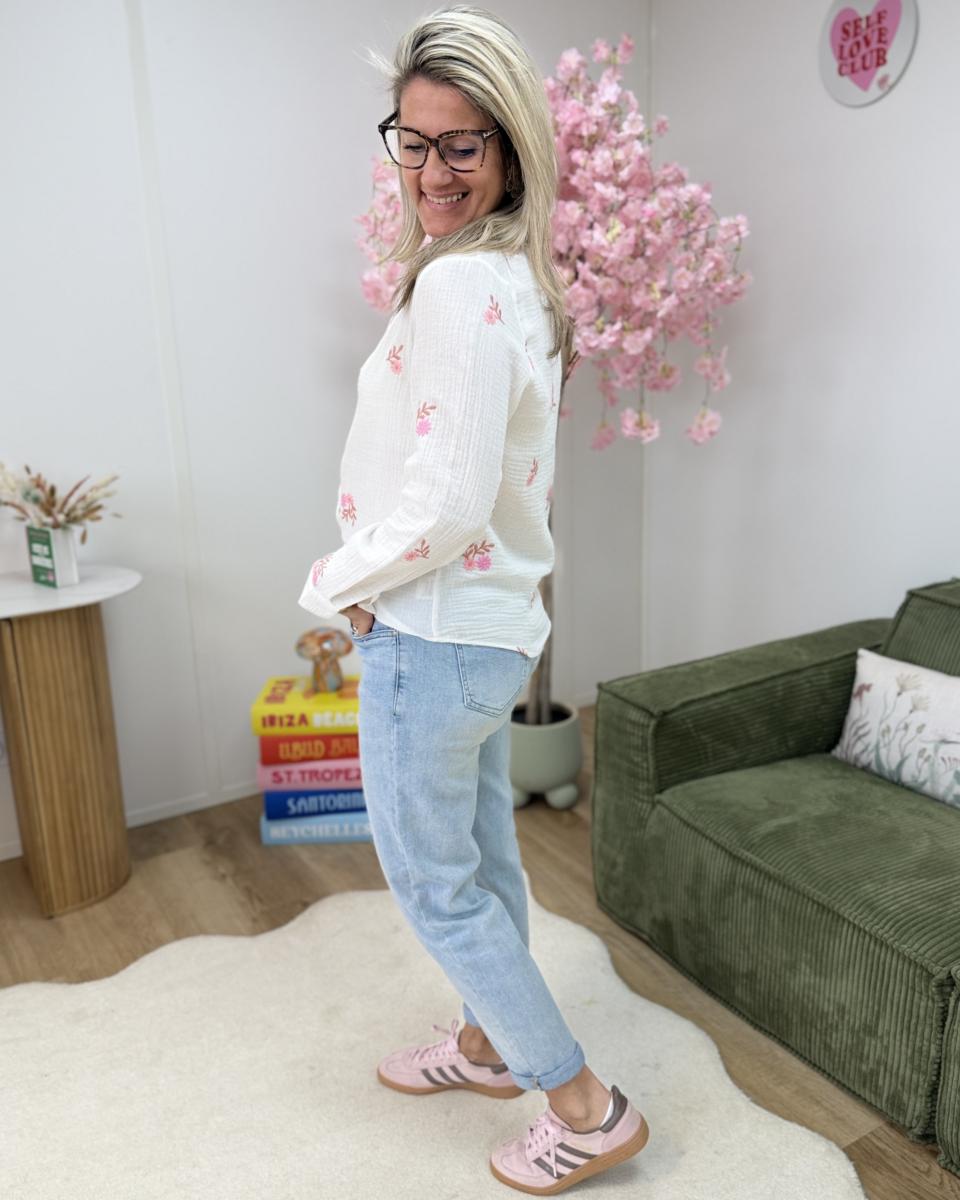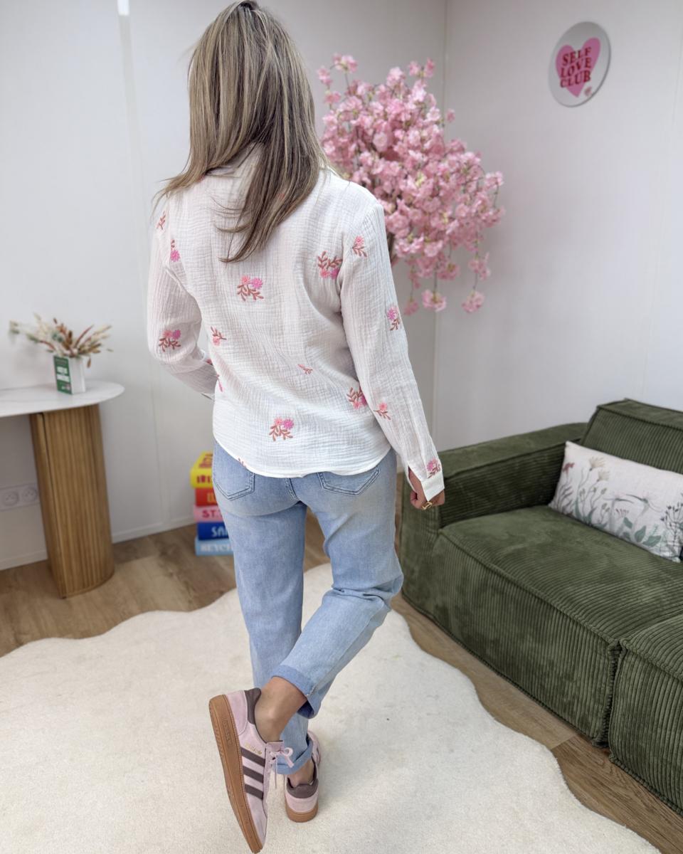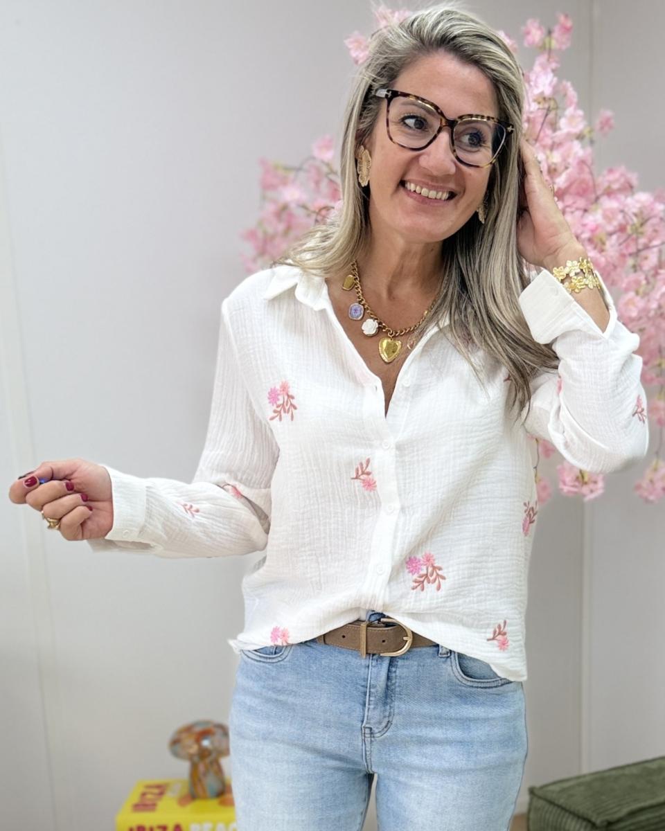 magnifique chemise brodé en gaze de coton