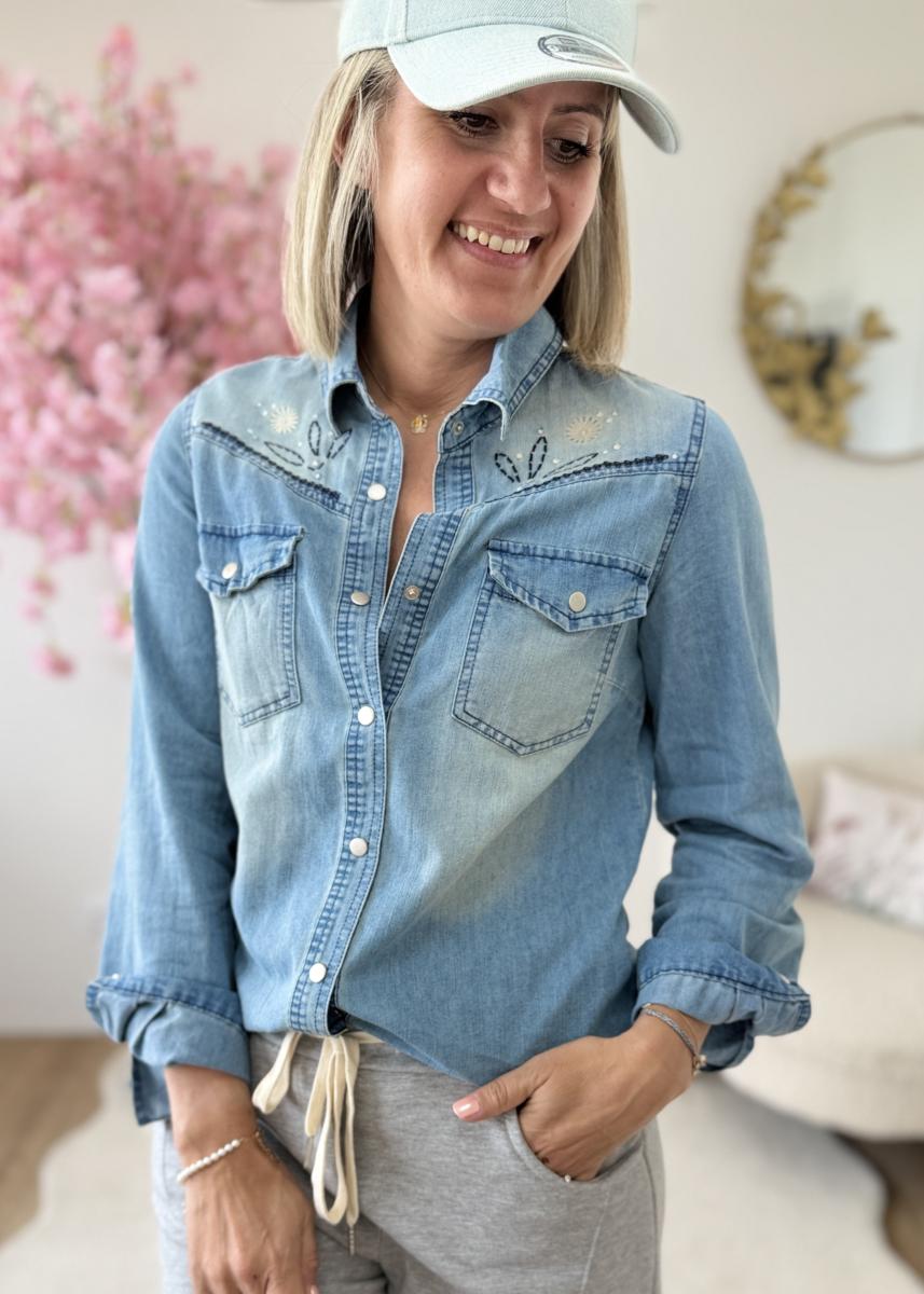 chemise en jean brodée