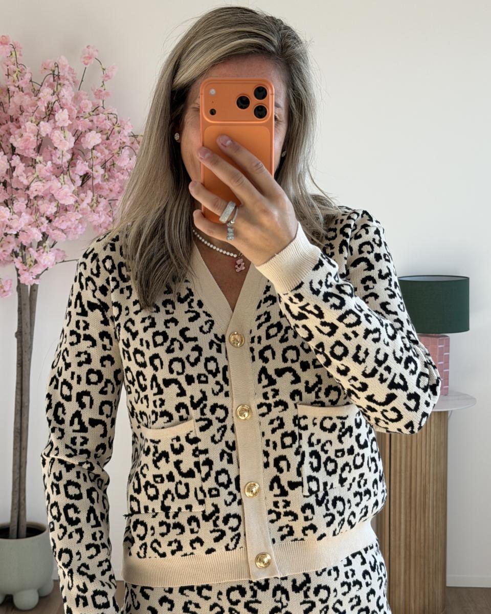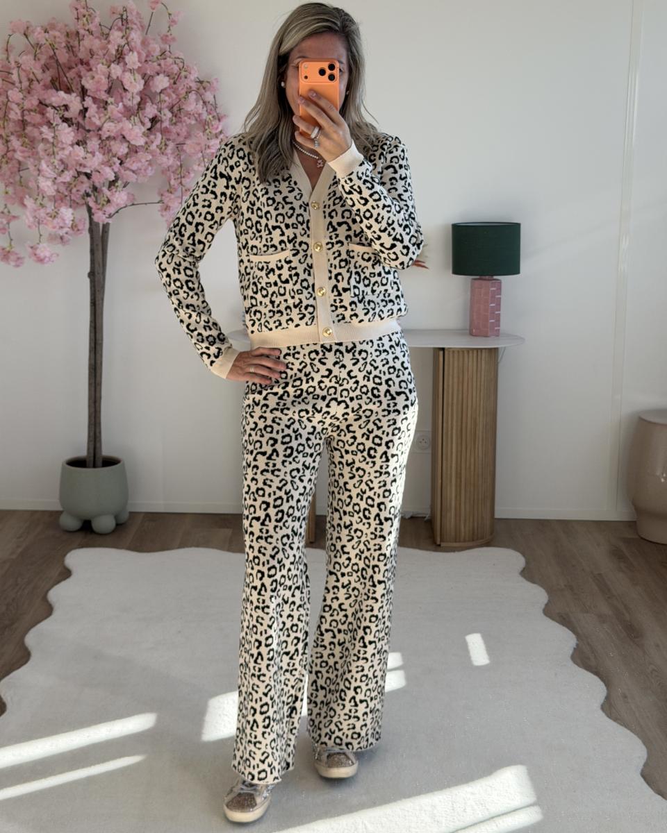 ensemble avec pantalon taille elastique et gilet boutons dorés