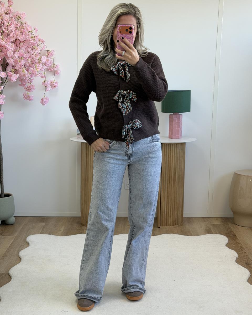 gilet avec boutons pression cachés par des nœuds en tissu liberty