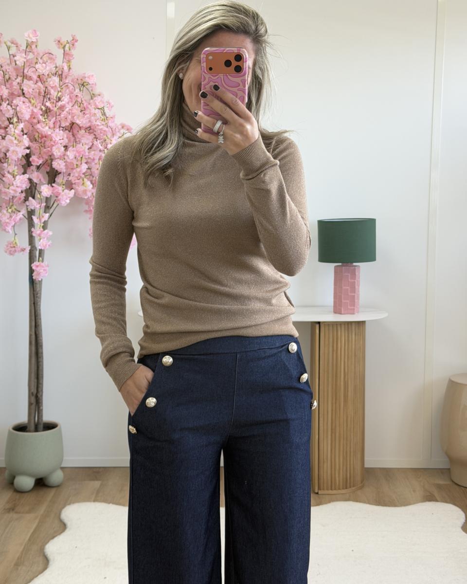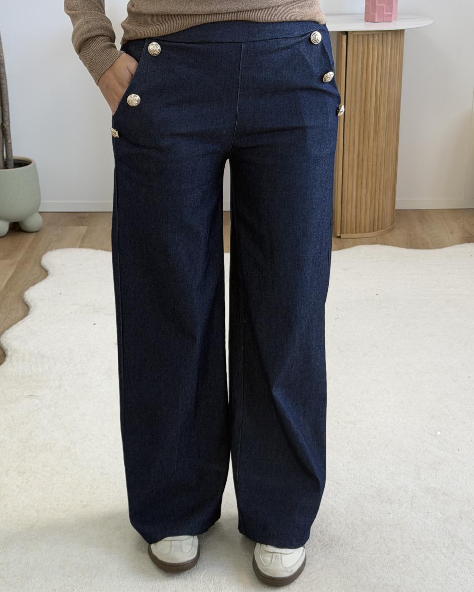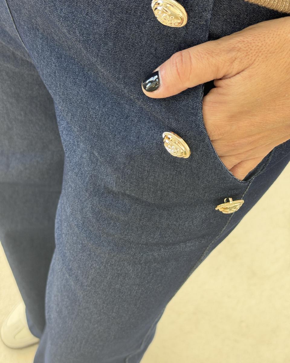 jeans taille haute et élastique avec boutons marins sur les cotés