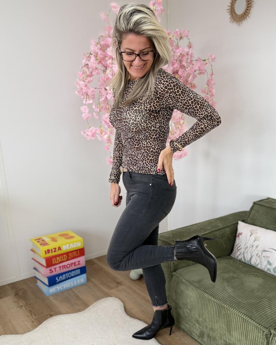 jean taille haute très extensible, 7/8 eme, effiloché en bas