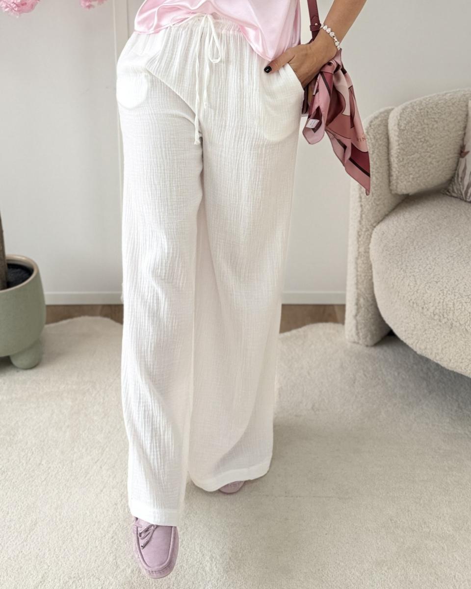 pantalon en gaze de coton avec coeurs brodés le long des jambes,
