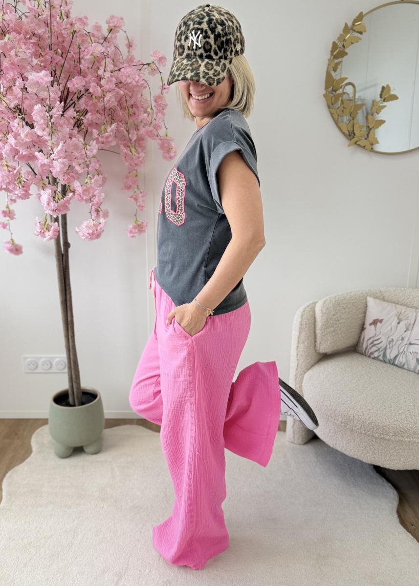 pantalon en gaze de coton avec coeurs brodés le long des jambes,