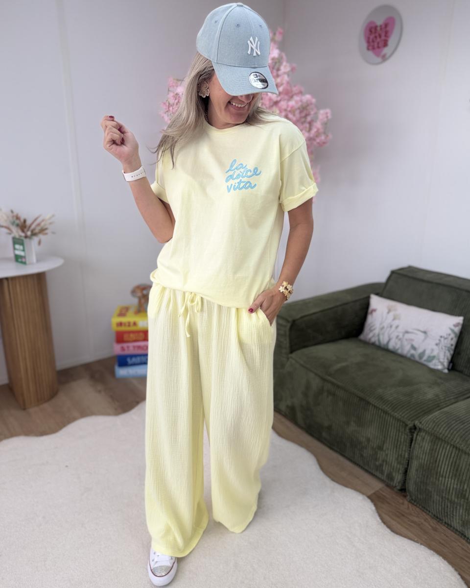 Pantalon gaze de coton jaune