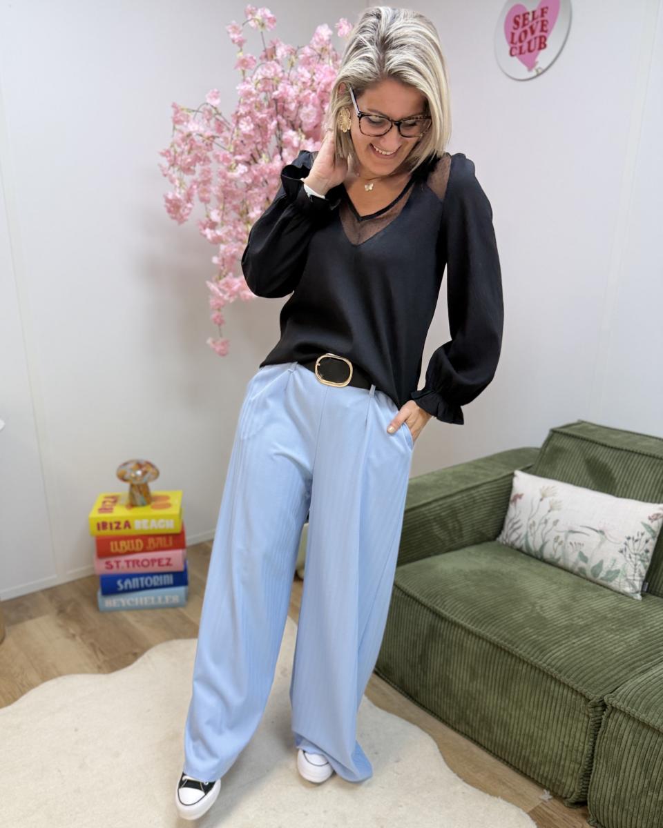 Pantalon ceinturé taille haute et elastique
