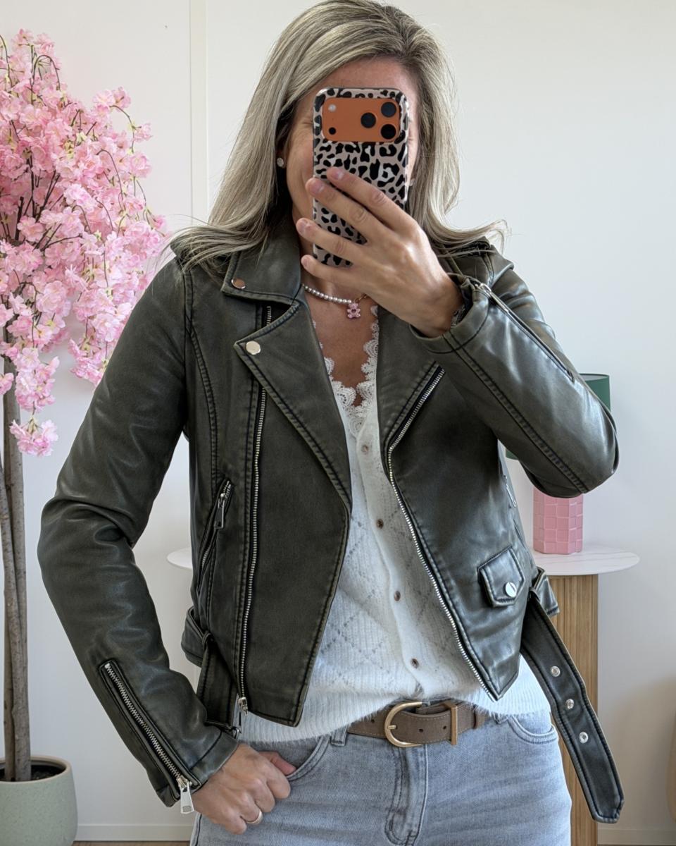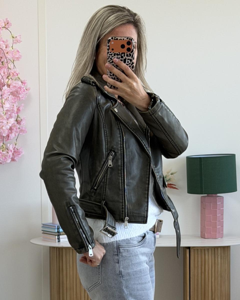 Magnifique perfecto délavé, ceinture cousue