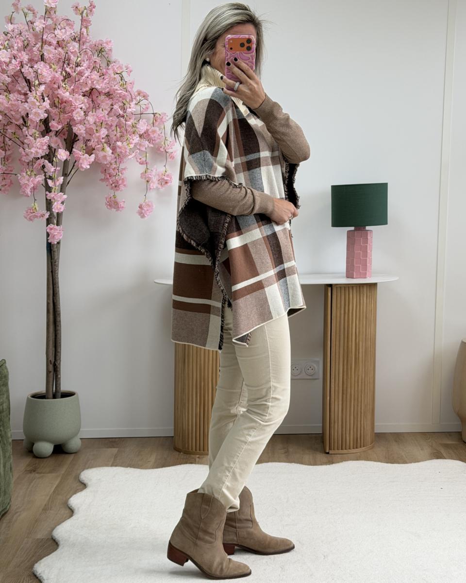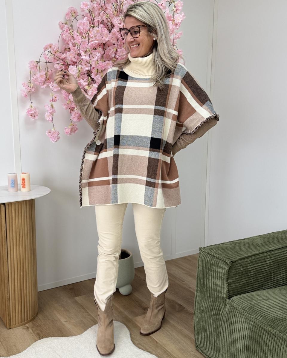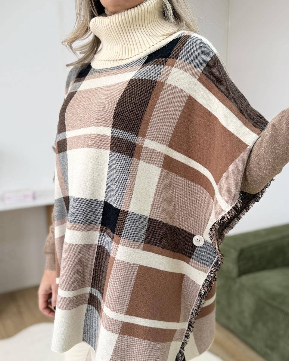 Poncho col roulé beige