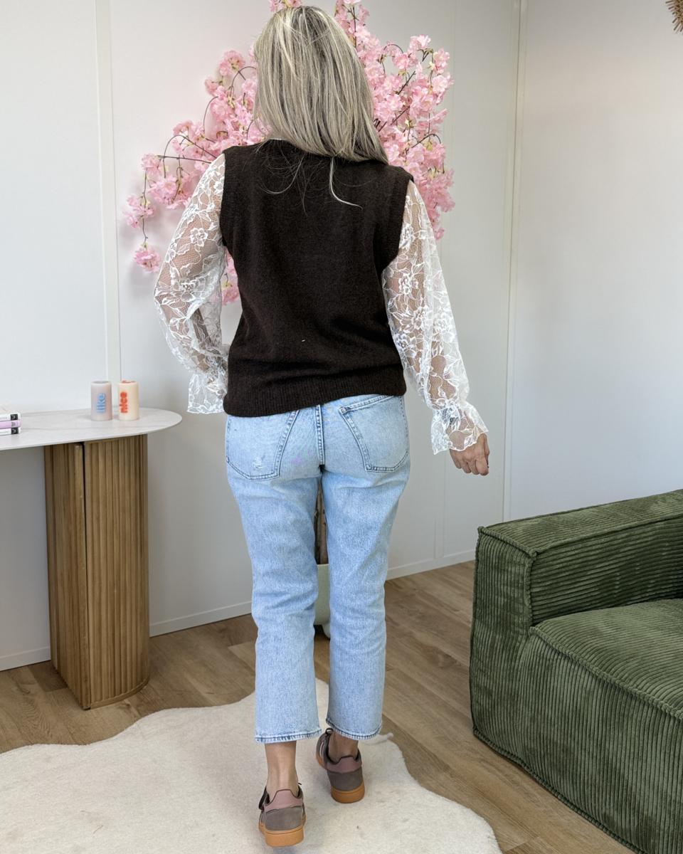 pull avec col chemise et manches dentelle