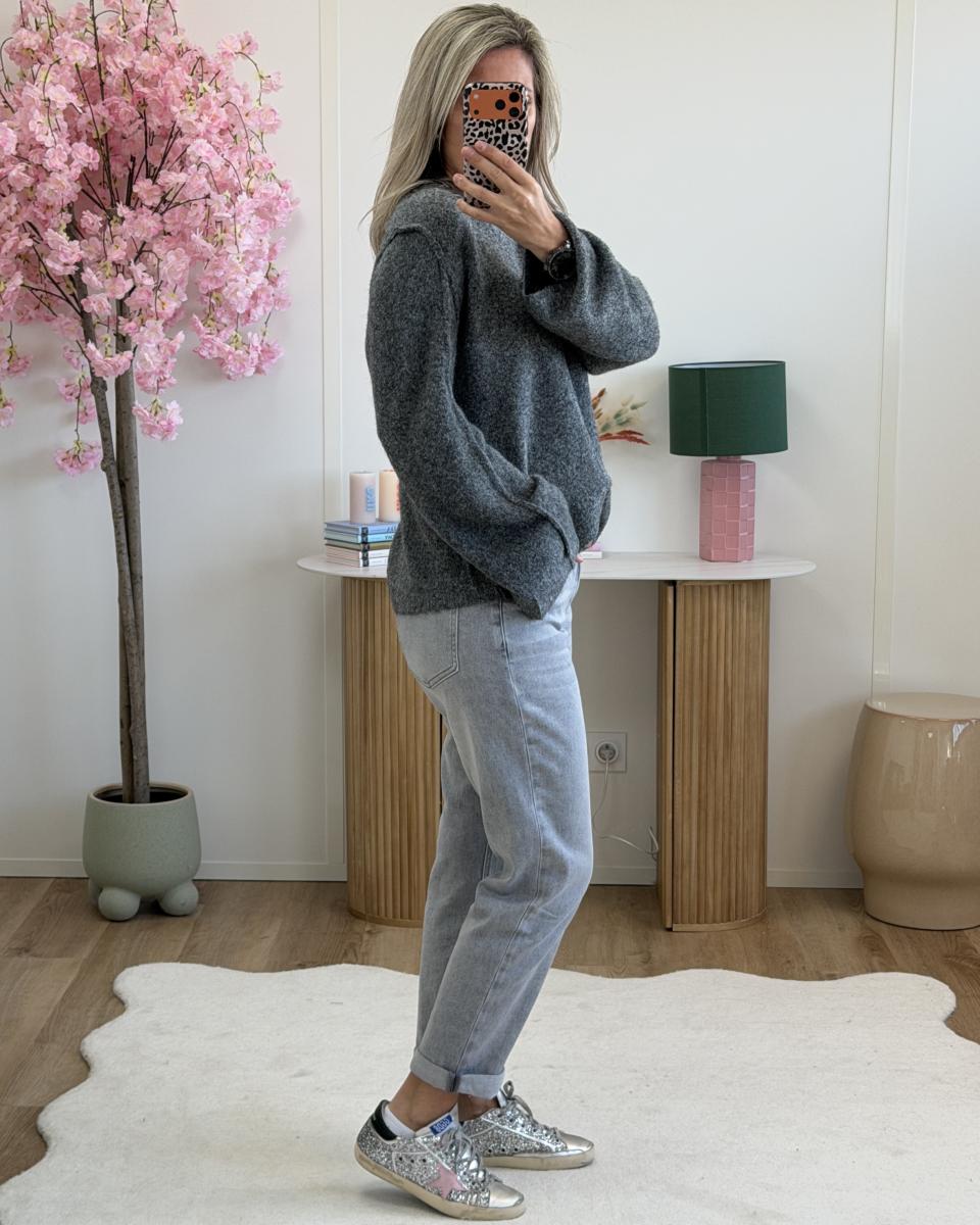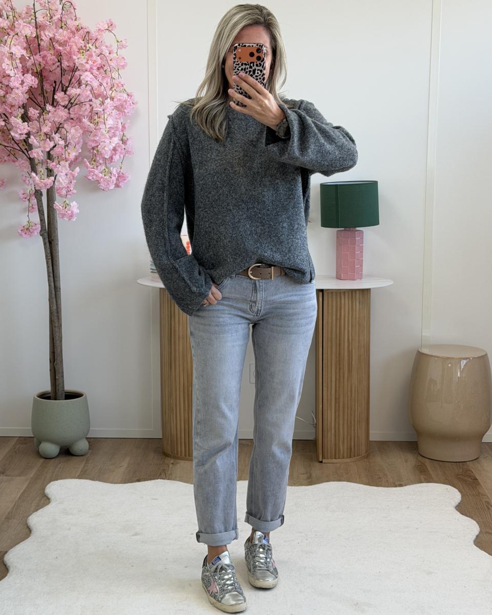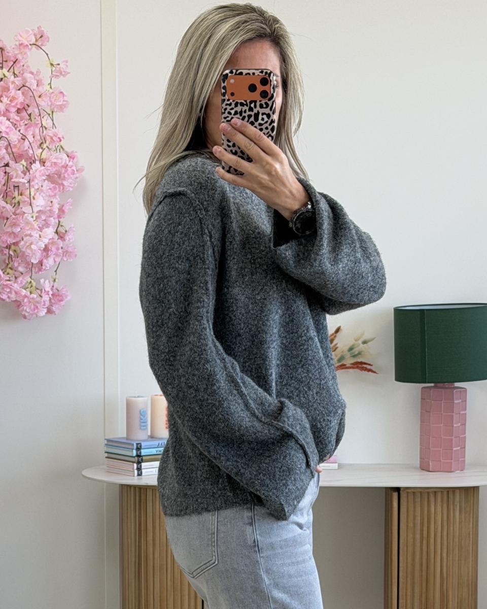 Pull avec foulard gris