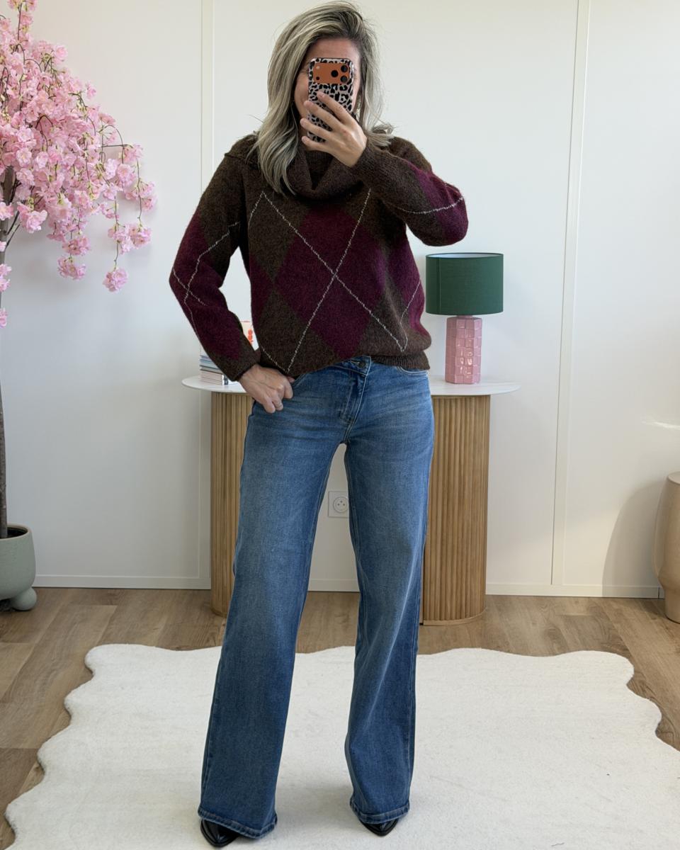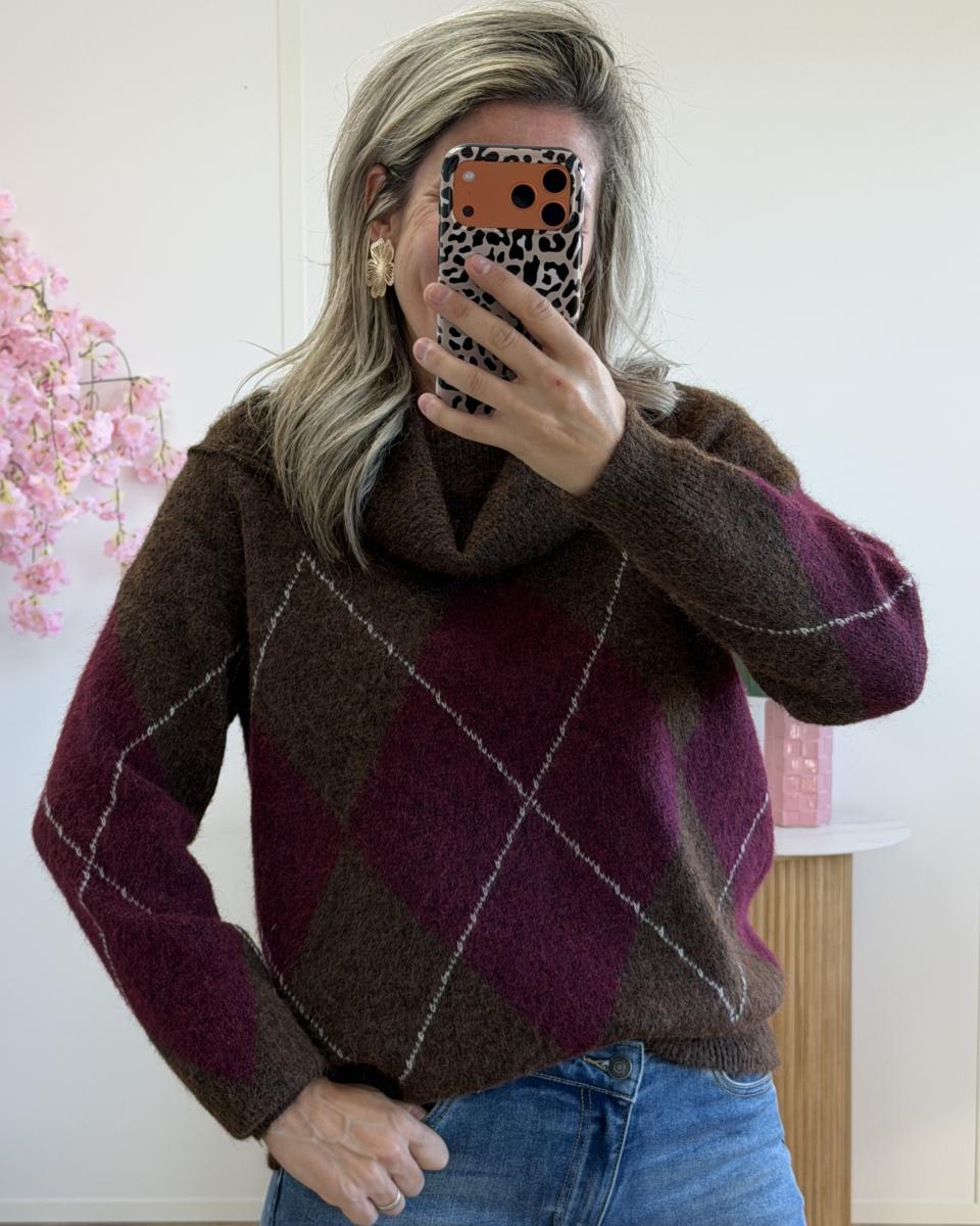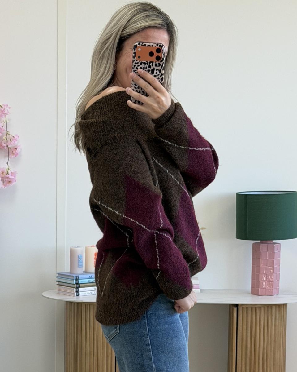 Pull col bardot bordeaux