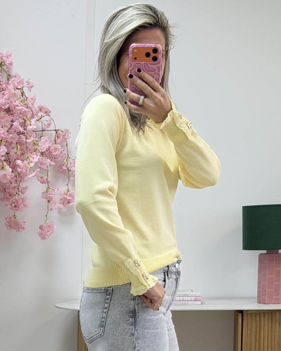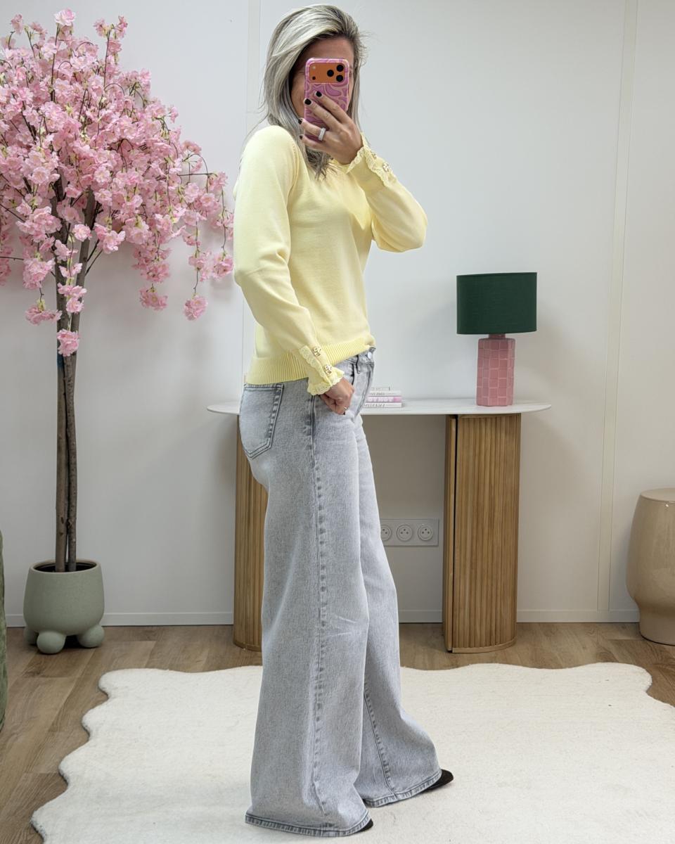 pull leger avec broderie et jolis boutons sur le bout des manches