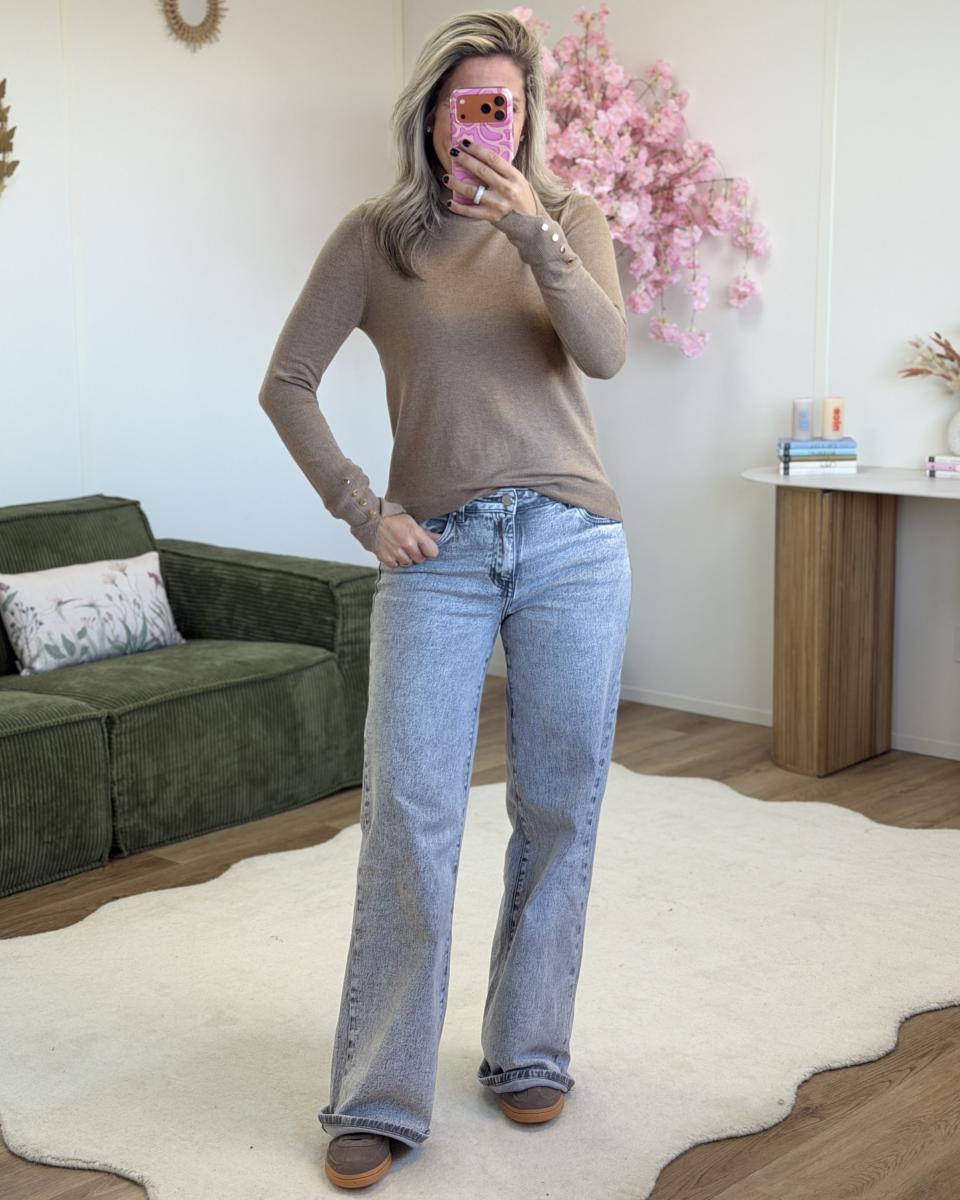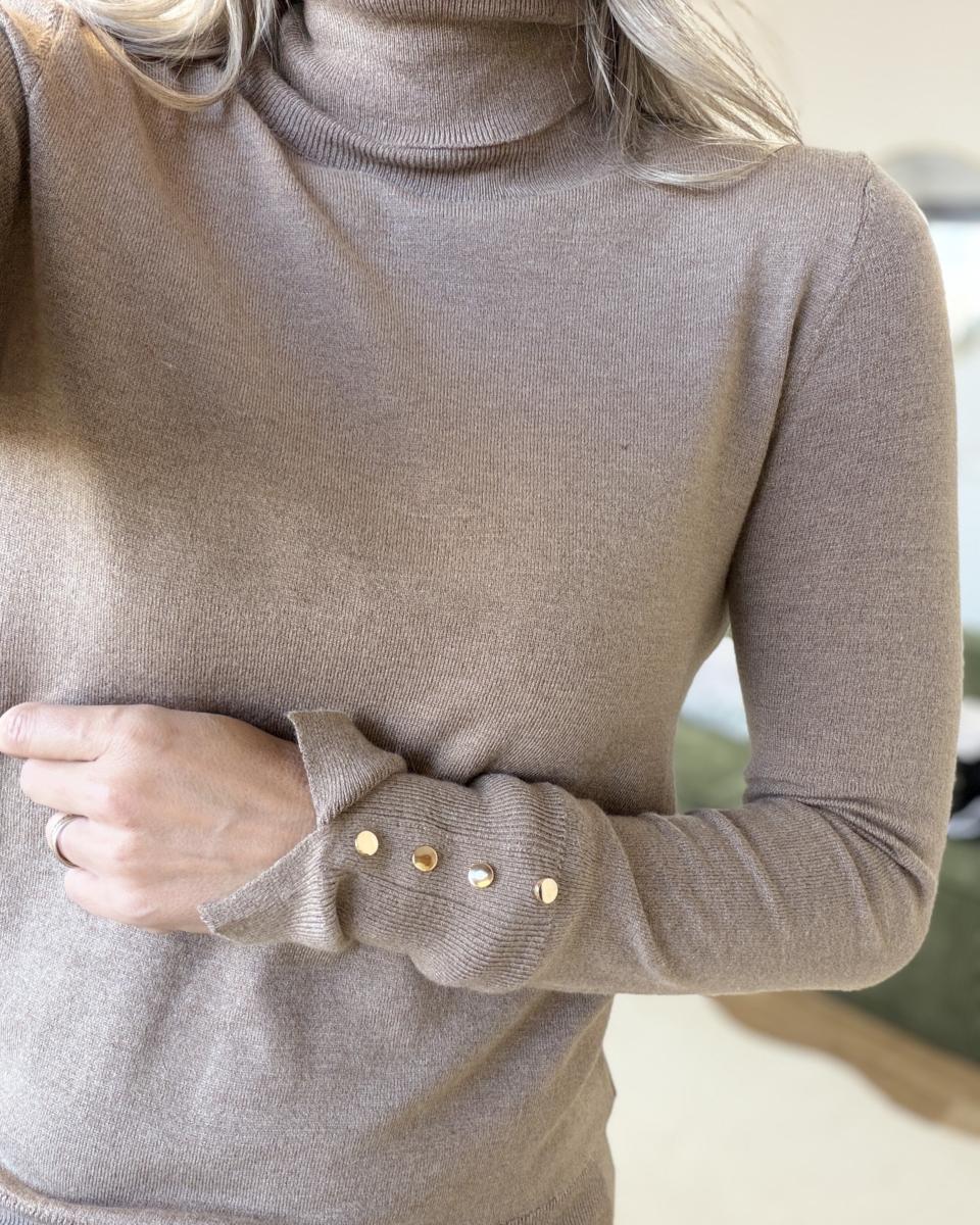 pull col roulé avec boutons or aux manches
