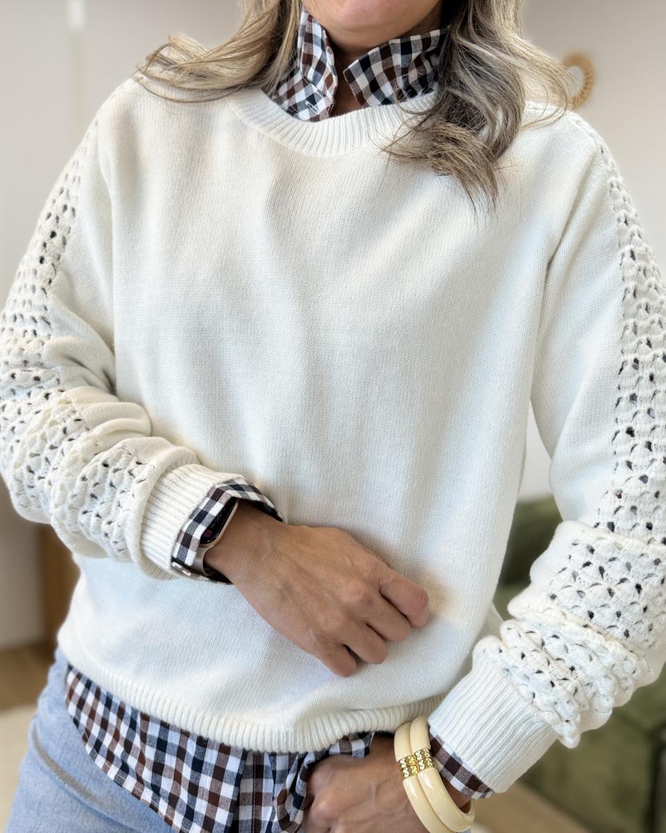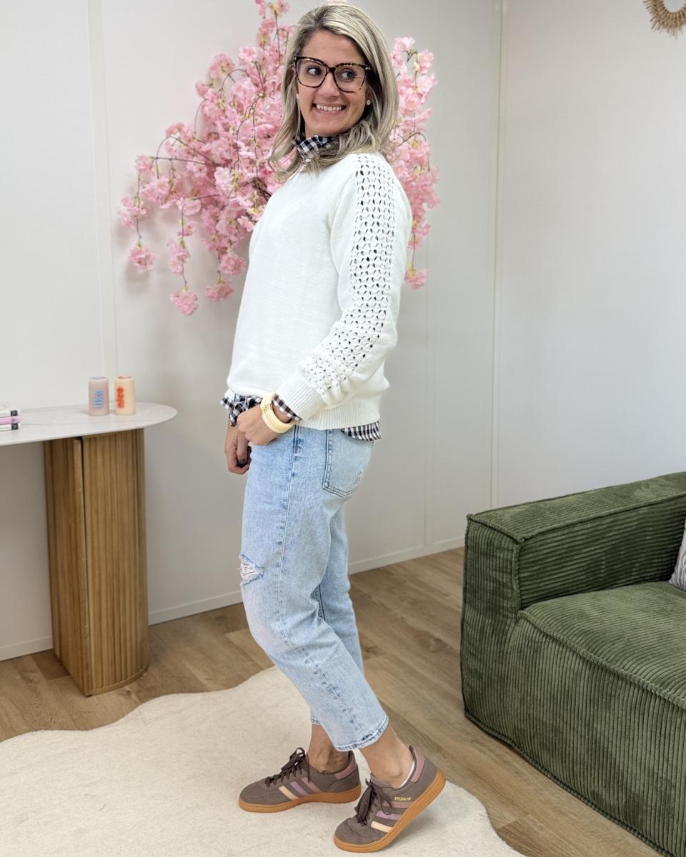 pull très doux avec manches ajourées