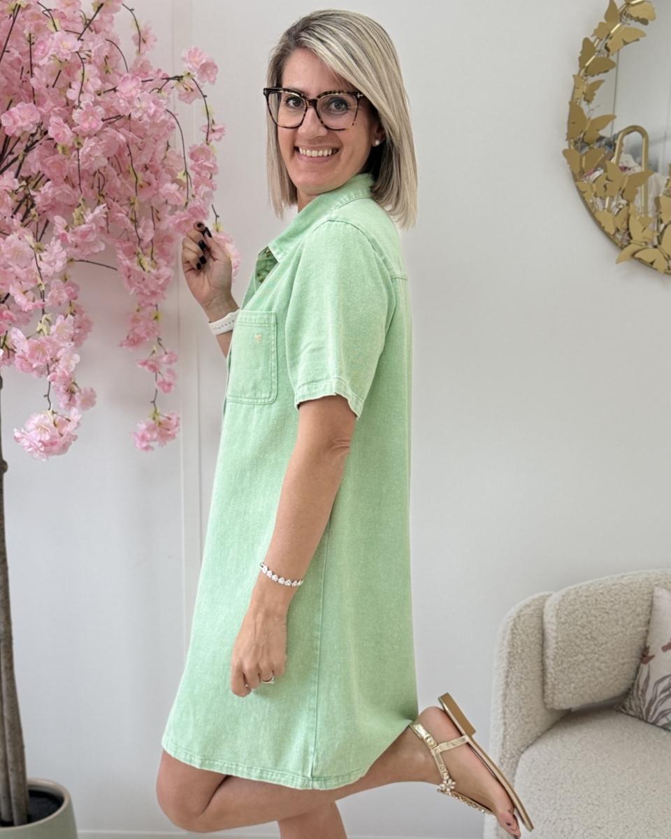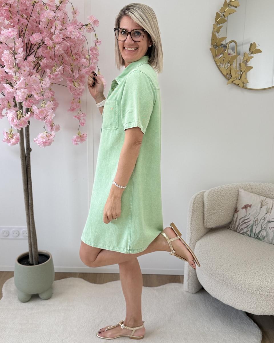 robe style jeans tissu non rigide avec coeur doré brodé sur la poche