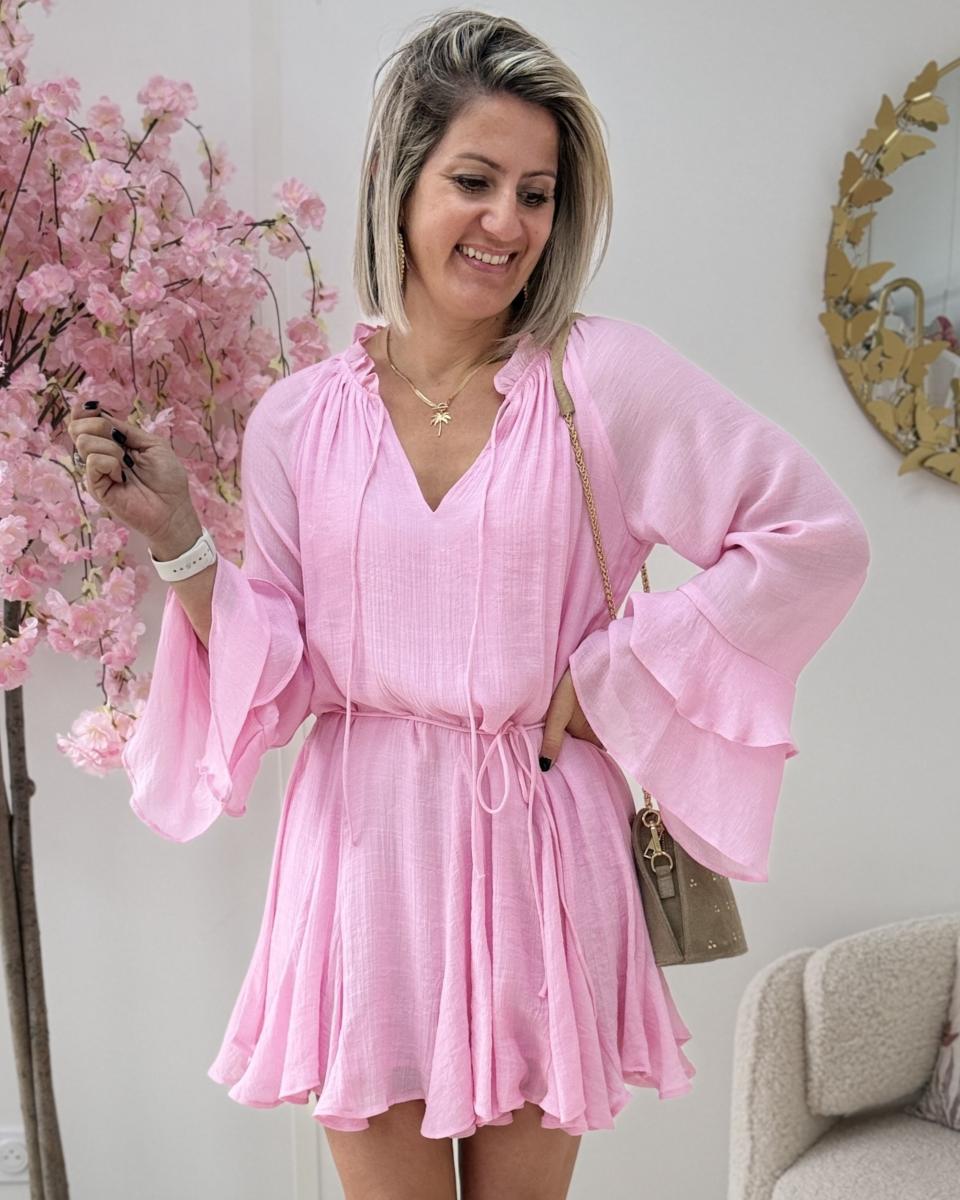 robe doublée, asymétrique avec lien à la taille