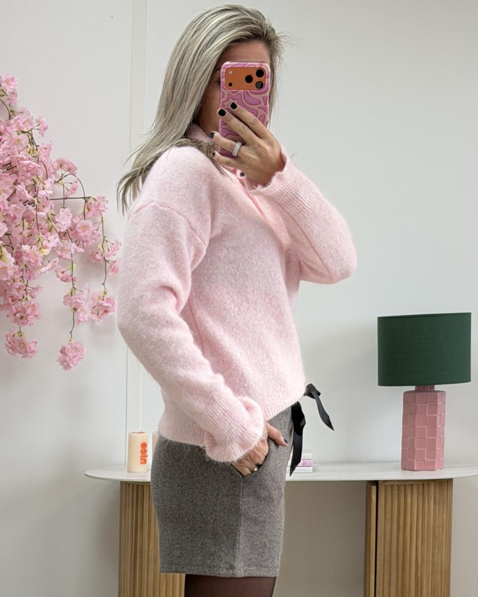 - short flanelle taille haute avec ceinture lien, fermeture éclair sur le coté