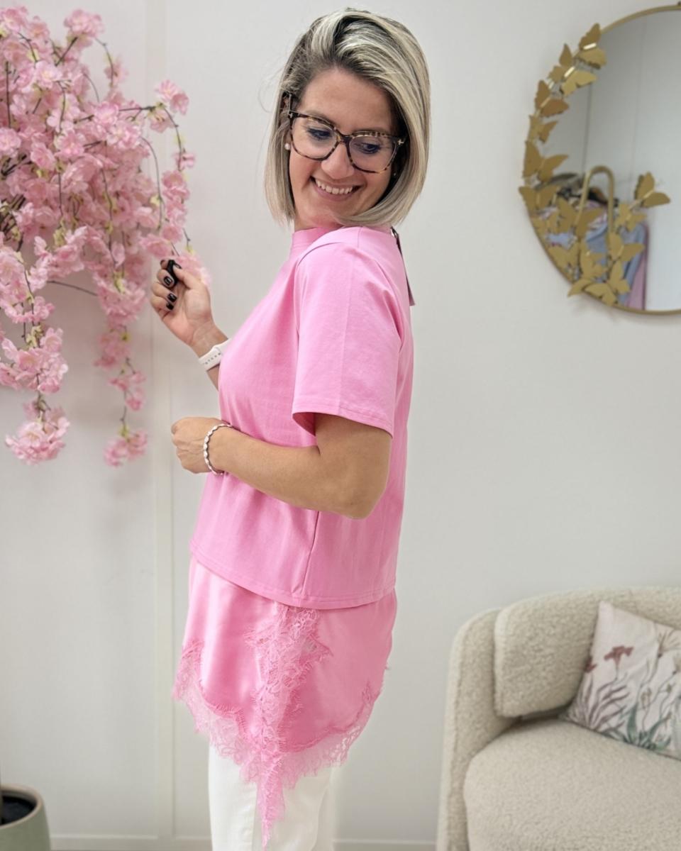 T shirt 2 en 1 rose