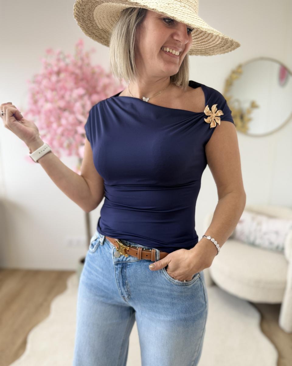 top avec bijoux sur l epaule