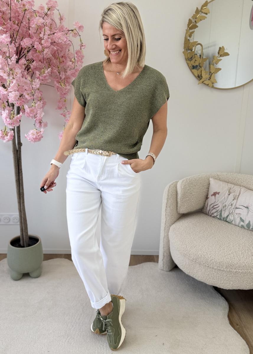 Top en maille lurex kaki